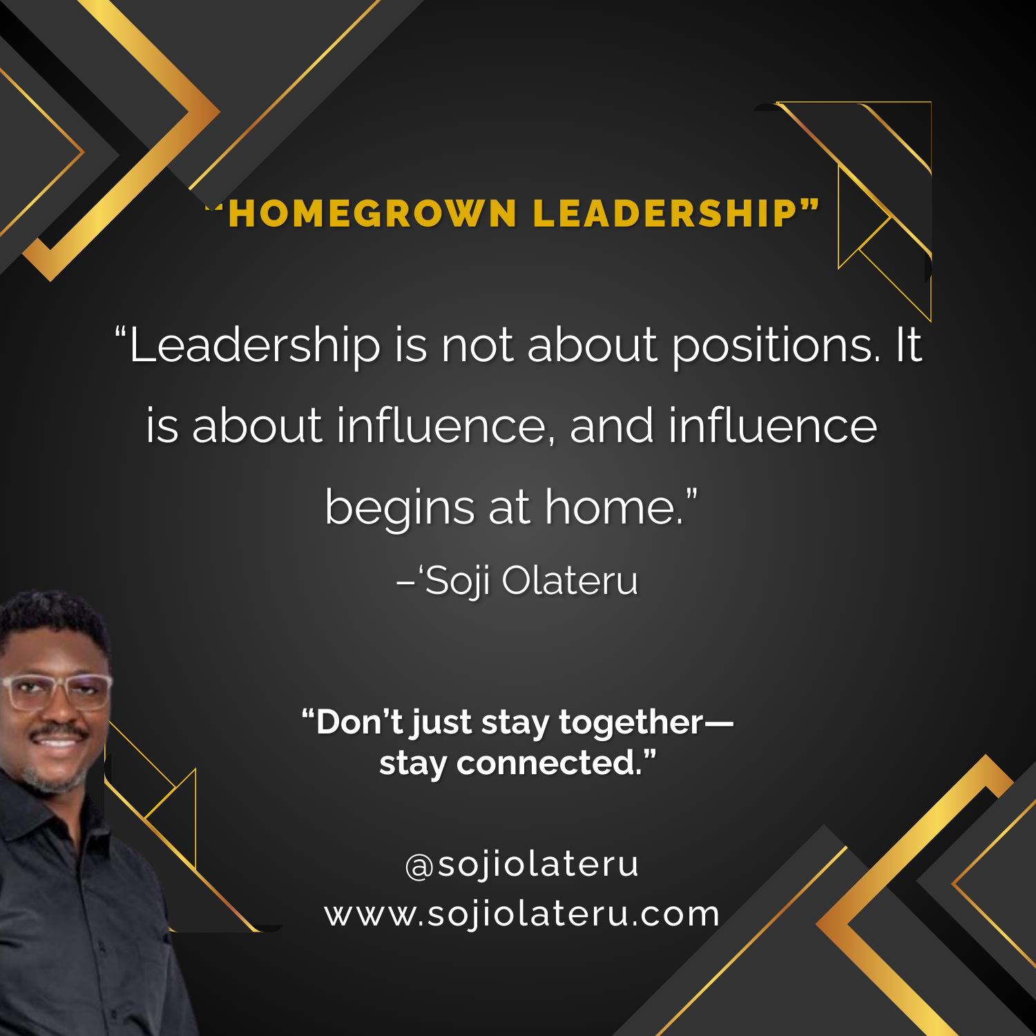 “Leadership is not about positions. It is about influence, and influence begins at home.”